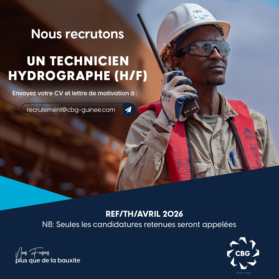 LA COMPAGNIE DES BAUXITES DE GUINEE S.A RECHERCHE POUR SON SITE DE KAMSAR – UN TECHNICIEN HYDROGRAPHE